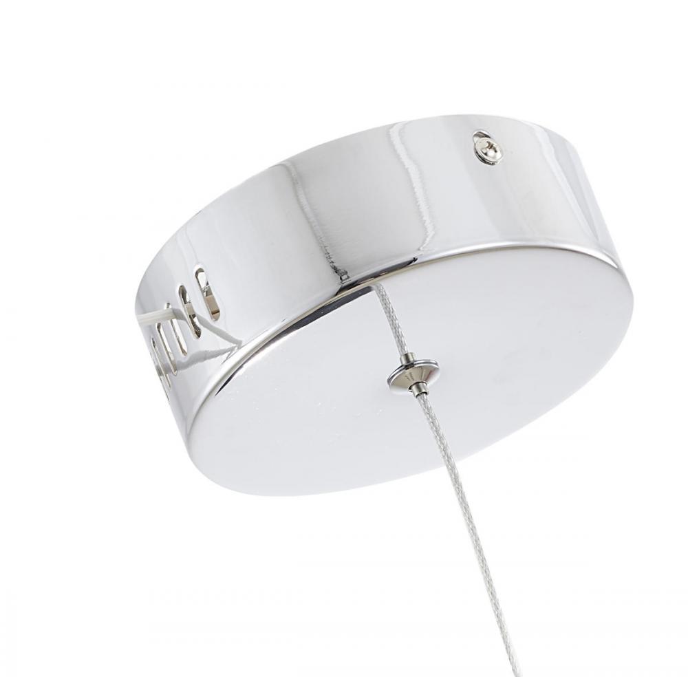This exquisite LED pendant has a chrome metal frame