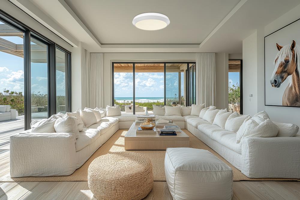 A sleek, low-profile design flush mount, the Quasars collection has a flared side profile that creates a gentle taper toward the ceiling. Available in three sizes to accommodate the most popular ceiling heights in a room without sacrificing style. Finish o