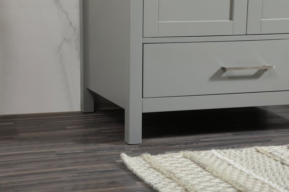 Comes with an undermount porcelain sink and a durable calacatta engineered marble stone top