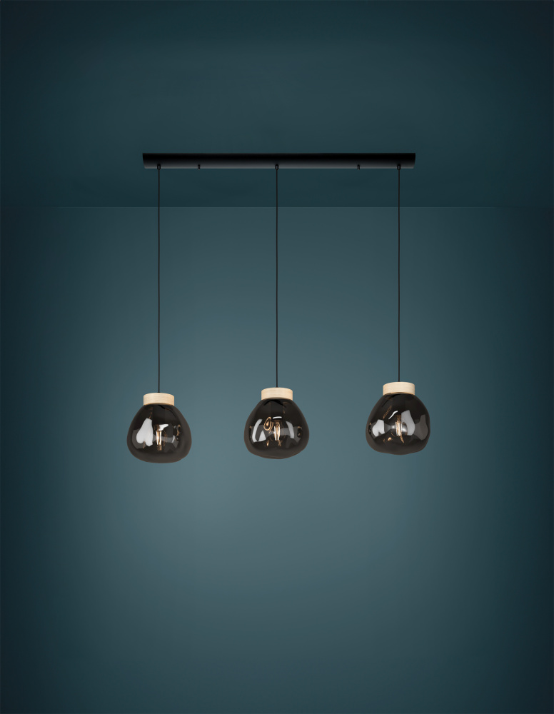 3 LT Linear Pendant Black w/ Wood Accent Finish & Metalic Smoked Glass Shade