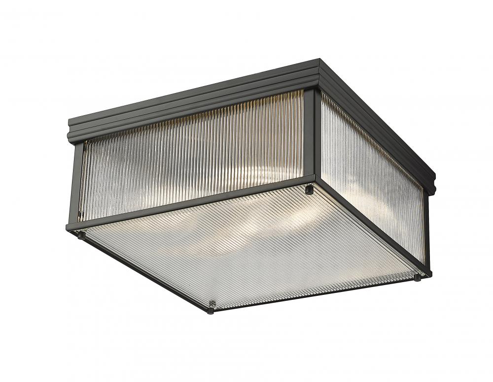 Transformed with the choice of architectural ribbed glass, this modern four-light flush mount ceiling light showcases clean lines and a timeless profile. Striking in spots with lower ceiling clearance, its a distinctive design that finds definition in its cool matte black finish and squared silhouette. Its a gorgeous choice for a bedroom, den, or even in your entryway.