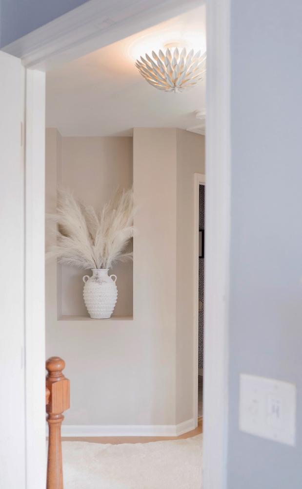 Matte white metal finish pairs well with any décor style. The velvety, non-glossy sheen offers a dramatic contrast to a room.