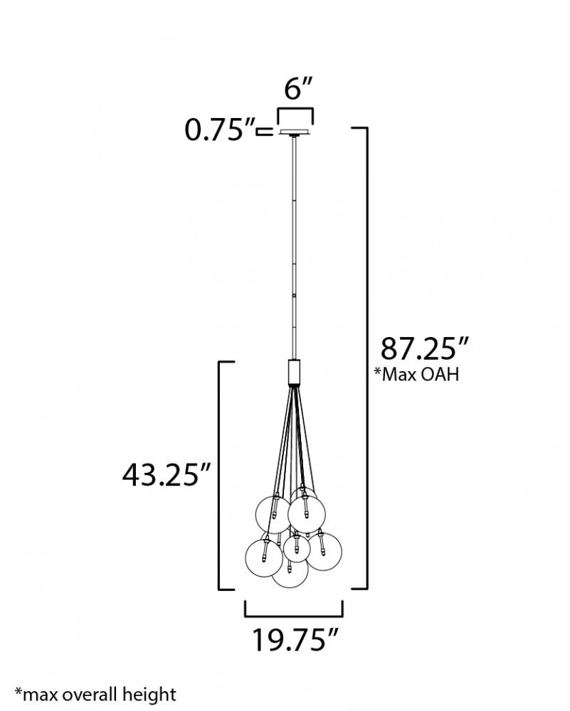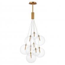 Clusters of glass globes in various sizes and color are suspended from a central point and burst outward. Configurations include a 4-Light, 9-Light, and 12-Light cluster and can be mounted close to the ceiling or included down rods to extend the height. Ch