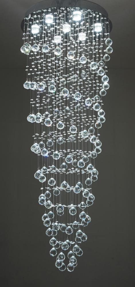 This exquisite chandelier is in a chrome finish. The frame is made out of metal, and it comes with clear crystal spiral. The cord length can be adjustable. You can create a timeless feel while using modern forms.