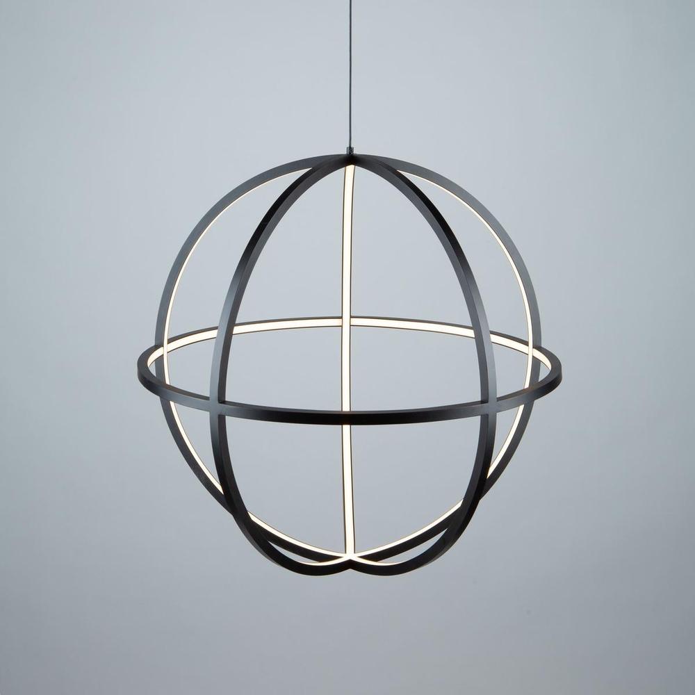 The "Celestial" collection orb is truly unique and stylish. The matte black finish on this double frame is eye catching. Illuminated by bright energy efficient integrated LED, this chandelier would fit in any surrounding, especially in transitional to contemporary settings. Smaller 13.75" size also available.