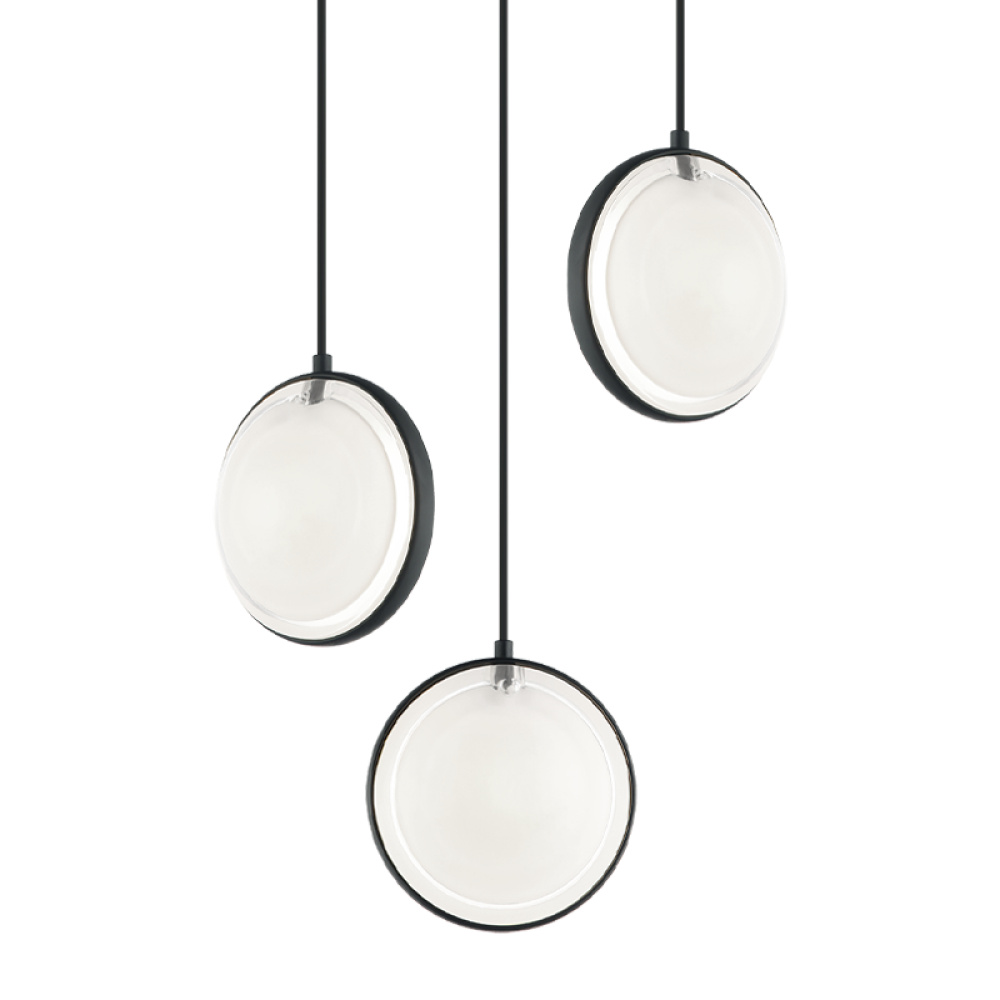 ChatoyantA minimalistic round-flat style with 2-layer shade – Opal shade on the inside surrounded by a Clear glass shade. LIGHTBULBS NOT INCLUDED