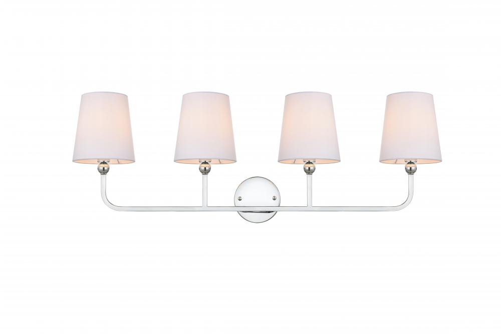 A modern twist on a traditional design, this vanity light is perfect for sprucing up your bathroom. Rated for use in damp locations, this iron fixture features a round backplate, curved arms, and fabric shade accents. Completely versatile, you can place this wall light as an uplight or downlight. Rated for use in damp locations, this will work perfectly over a vanity in your bathroom.