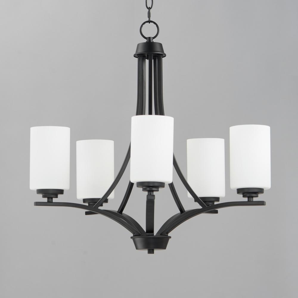 Low sloping arms of rectilinear tubing is finished in a variety of options that include Satin Nickel, Oil Rubbed Bronze, Matte Black, and a contemporary Satin Brass finish. Tall, cylindrical Satin White glass shades soften the light source within. Offered