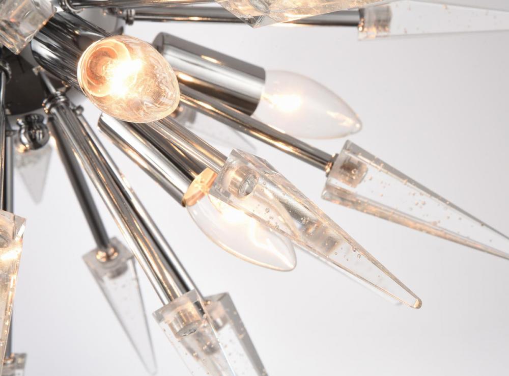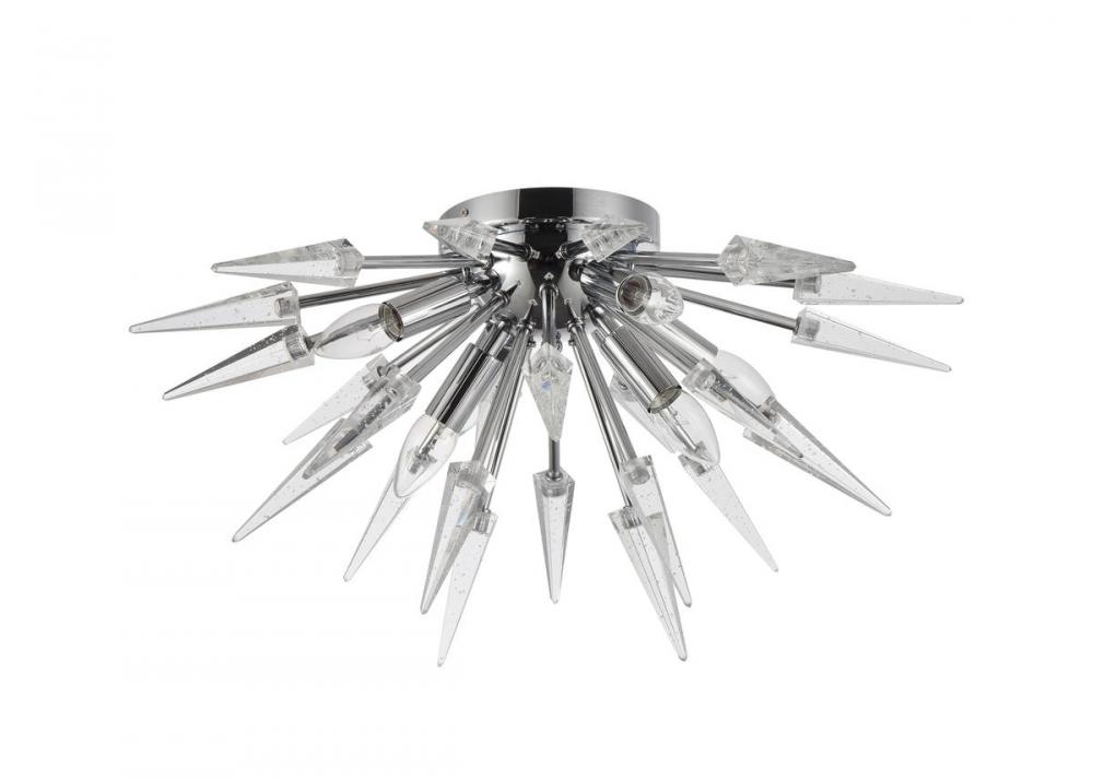 This modern flush mount is in a chrome finish. The frame is made out of metal in a spike shape, and it comes with crystal accents in clear color. You can create a timeless feel while using modern forms.