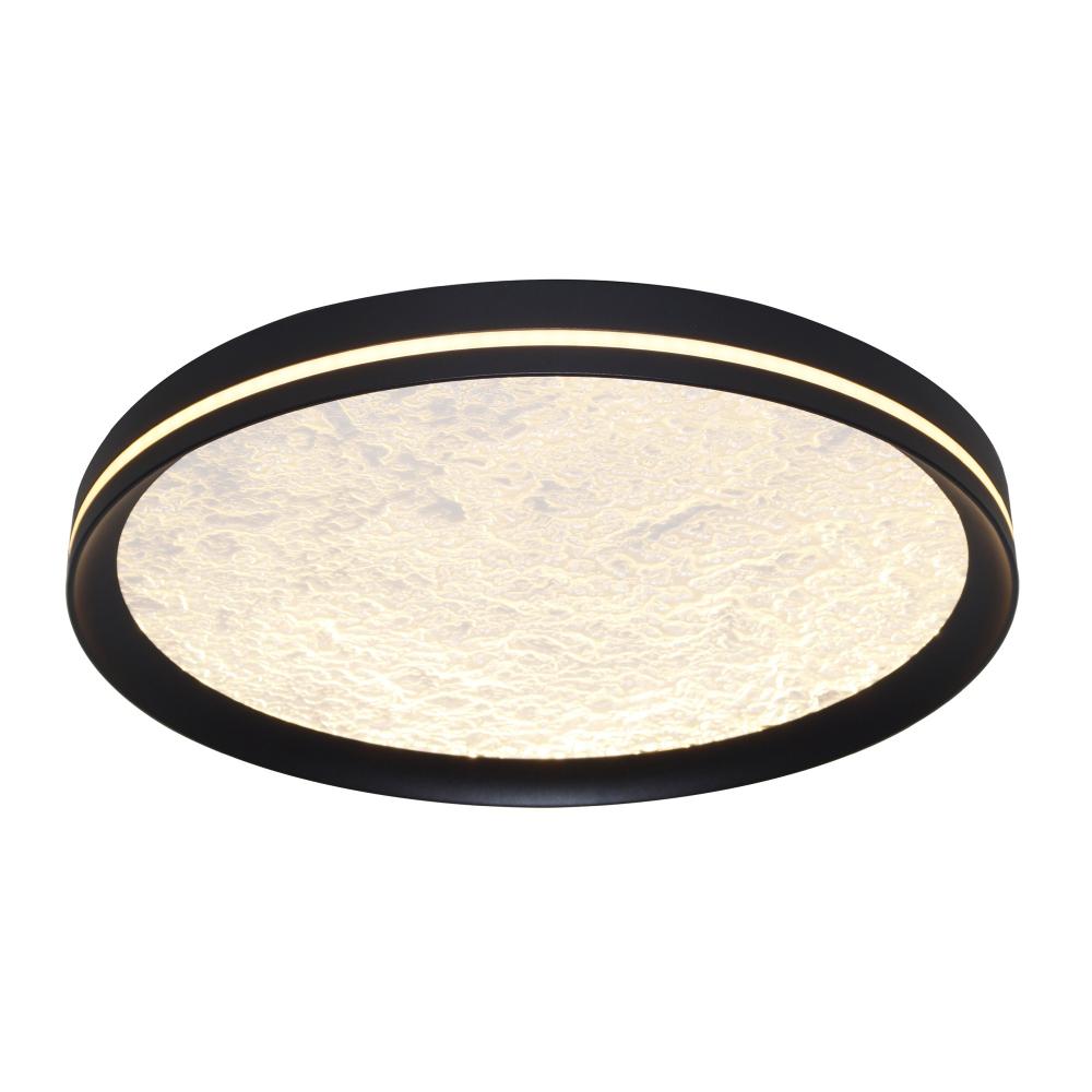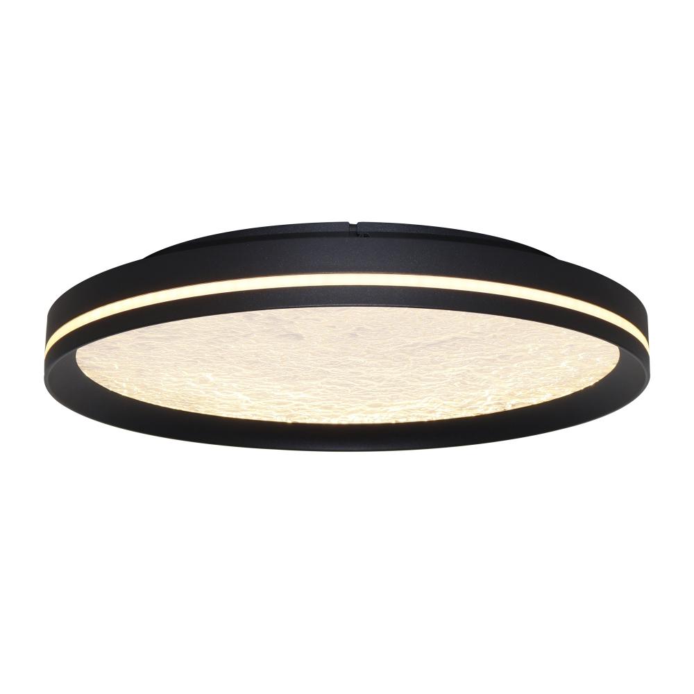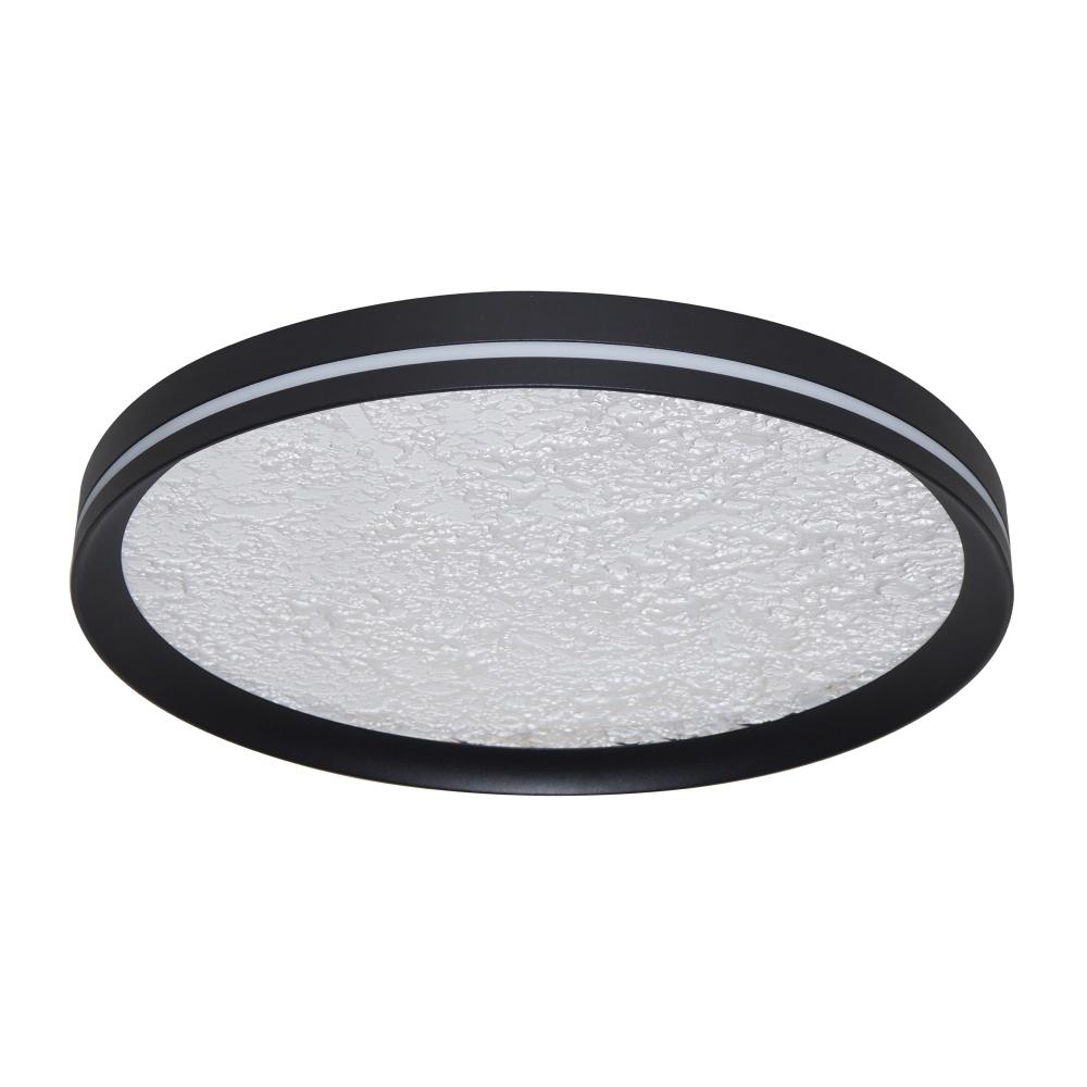 This LED flushmount from the Luna Collection is a celestial masterpiece, blending modern elegance with cosmic allure. Its black frame cradles a textured “moon crater” lens, through which a soft, glittering glow emanates, evoking the magic of starlit skies. A subtle side cutout allows ambient light to gracefully spill onto the ceiling, creating a halo-like effect that transforms any space into a serene sanctuary. The frame of this flushmount is black.