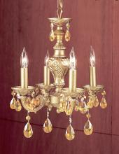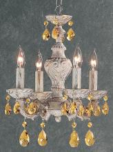 Gabrielle 12"Wide x 12"Long x 16"High Lights: 4 x 60W candelabra Finish Shown: English Bronze Crystal Shown: Crystalique Chain or Cable Length: 3 Ship Via: Parcel Shipping Weight: 8 Hanging Weight: 7 Catalog/Page Ref: 5005/164 A whimsical union of traditional cast mini chandeliers with colorful crystal accents to grace any part of the home. Let your decorating inspiration guide you - either in powder rooms, baths, girls rooms or anywhere else. Crystal pendants are almond shaped also called tear drop.