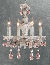 A whimsical union of traditional cast mini chandeliers with colorful crystal accents to grace any part of the home. Let your decorating inspiration guide you - either in powder rooms, baths, girls rooms or anywhere else. Crystal pendants are almond shaped also called tear drop.