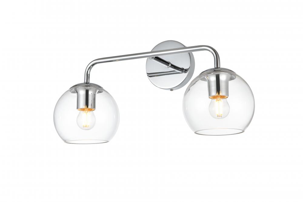 A modern twist on a traditional design, this vanity light is perfect for sprucing up your bathroom. Rated for use in damp locations, this iron fixture features a round backplate, curved arms, and orb accents. Completely versatile, you can place this wall light as an uplight or downlight. Rated for use in damp locations, this will work perfectly over a vanity in your bathroom.