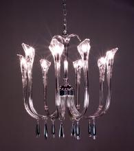 Inspiration 24"Wide x 24"Long x 20"High Lights: 8 x 35W G9 Finish Shown: Chrome Crystal Shown: n/a Chain or Cable Length: 3 Ship Via: Parcel Shipping Weight: 19 Hanging Weight: 14 Catalog/Page Ref: 5410/34 The beauty of a flower reaching upward to the heavens was the inspiration behind this series with its mouth blown gracefully upswept crystal arms. Let the simple elegance of these fixtures or the palette of colorful crystals available be your inspiration.