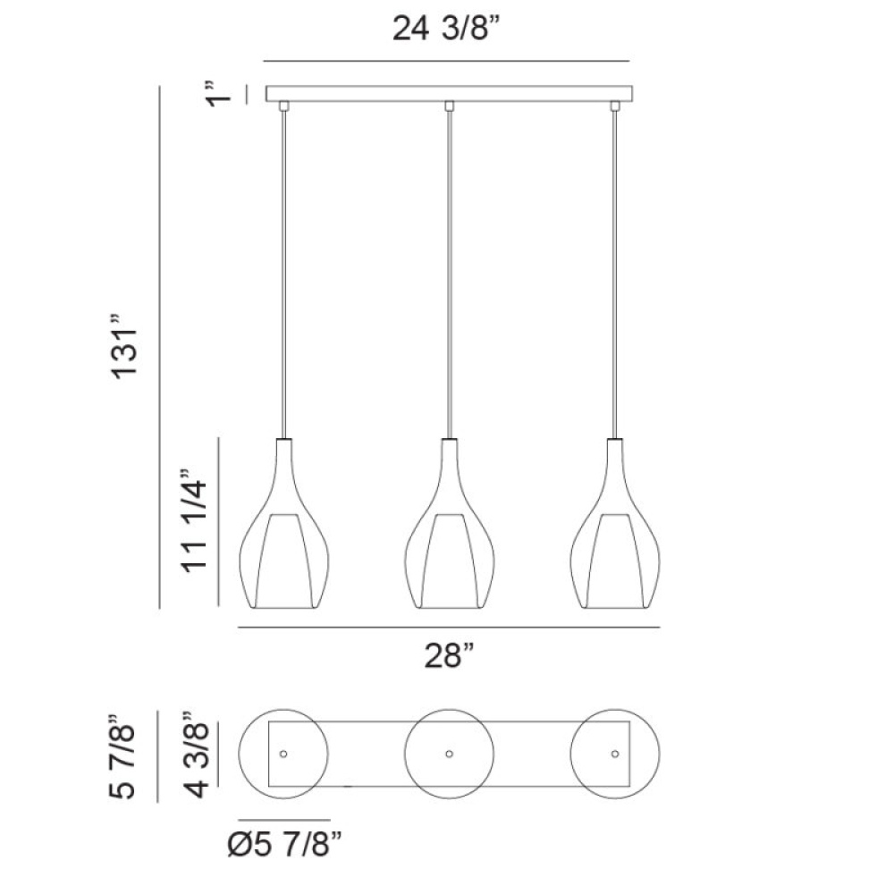 3 LT "JERICHO" 28"L RECTANGLE CANOPY MATTE BLACK+ SM GLASS PENDANT E26