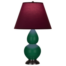 Jungle Glazed Ceramic with Deep Patina Bronze Finished Accents Small Double Gourd Accent Lamp with Pearl Dupioni Fabric Shade - Our Double Gourd collection features a simple but gracefully curving silhouette. Available in a wide array of vibrant colors and several different base finishes.