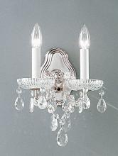 Maria Theresa 9"Wide x 10"High x 6"Deep Lights: 2 x 60W candelabra Finish Shown: Olde World Gold Crystal Shown: Crystalique Chain or Cable Length: n/a Ship Via: Parcel Shipping Weight: 4 Hanging Weight: 3 Catalog/Page Ref: 5005/33 The perfect marriage between old and new ... Traditional Maria Theresa chandeliers and wall sconces trimmed with today’s highest quality Swarovski Elements, Spectra or more economical hand cut and polished Crystalique crystal produces a real look of elegance that will last for years to come. All Olde World Gold items illustrated can be ordered in Chrome (CH) finish.