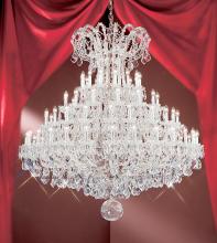 Maria Theresa 60"Wide x 60"Long x 68"High Lights: 84 x 40W candelabra Finish Shown: Olde World Gold Crystal Shown: Crystalique Chain or Cable Length: 6 Ship Via: TRUCK Shipping Weight: 295 Hanging Weight: 282 Catalog/Page Ref: 5005/43 The perfect marriage between old and new ... Traditional Maria Theresa chandeliers and wall sconces trimmed with today’s highest quality Swarovski Elements, Spectra or more economical hand cut and polished Crystalique crystal produces a real look of elegance that will last for years to come. All Olde World Gold items illustrated can be ordered in Chrome (CH) finish.