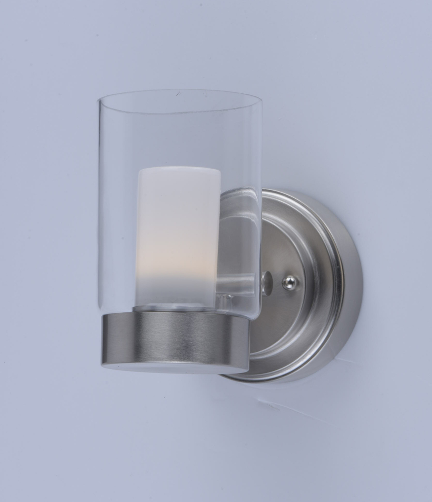A contemporary design featuring a Satin Nickel frame supporting Clear cylinder glass shades with Frost interior diffusers all powered with energy efficient LED technology. Finally LED technology at an affordable price.