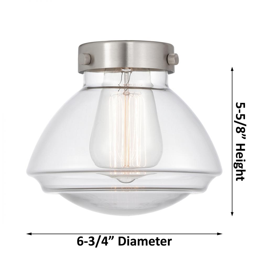 Olean - 1 Light - 7 inch - Satin Gold - Clear Shade - Flush Mount