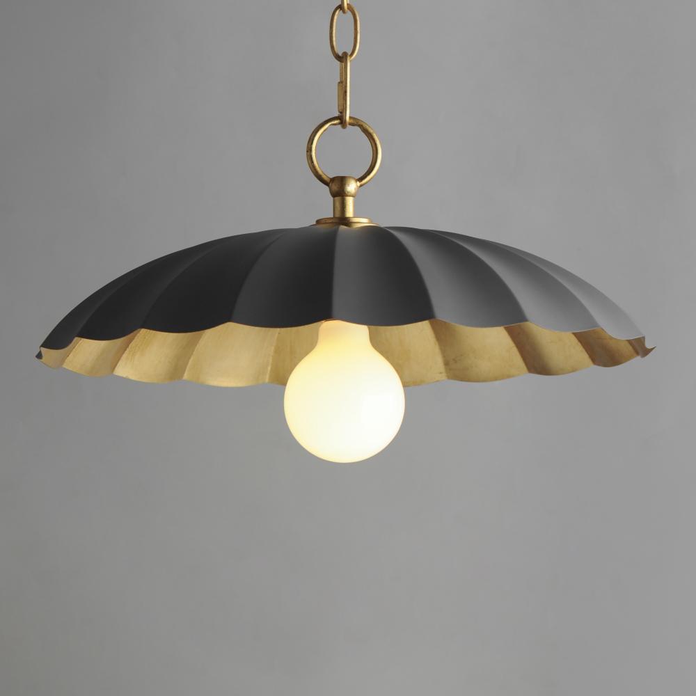This refreshing collection features the nostalgic detailing of scalloped metal shades with gold leaf interiors. The hand applied gold-leaf interiors reflect the light source within the shades casting a warmer glow downwards. The collection is offered in ch