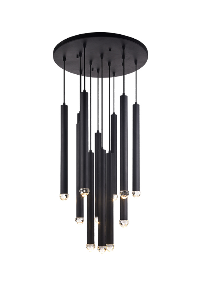 Inspired by the traditional windchime, Reign is designed with cylinders with an added detailed glass shade, paired with striking LED. This collection provides a contemporary yet dramatic feel. This bold collection is available in 3 finishes: Aged Gold Brass, Chrome and Matte Black.