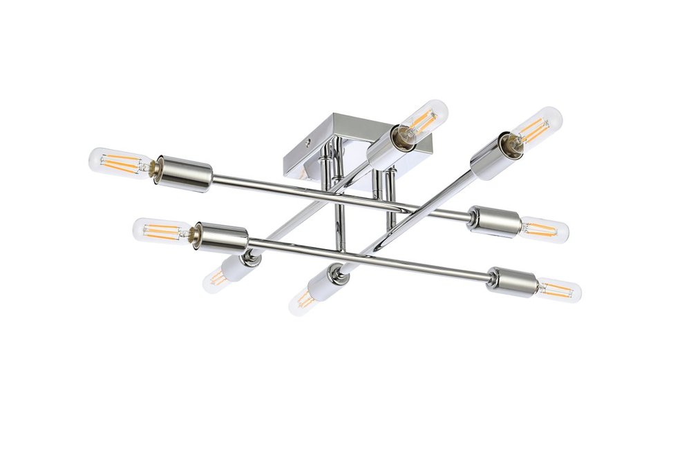 The Script collection flush mount light is an excellent piece to add to your space. The unique shape will stand out as it lights up the room. Available in a black, brass, or chrome finish this will add style to your living room, foyer, or kitchen.This product is dimmable and requires eight E12 lamps. Light bulbs not included.