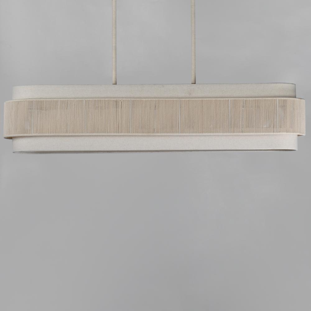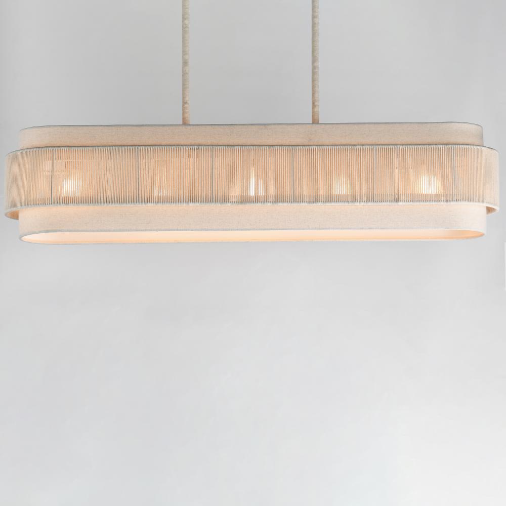 The Seacliff collection blends coastal charm with transitional elegance. Its centerpiece features twisted cotton strands, filtering light beautifully while adding texture and visual interest. Above and below the band of cotton twine, an Off-White linen sha