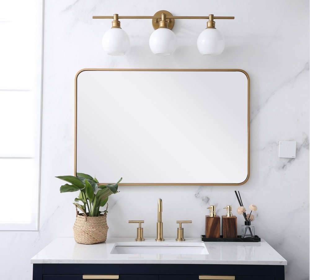 Soft corner metal rectangular mirror 24x36 inch in Brass