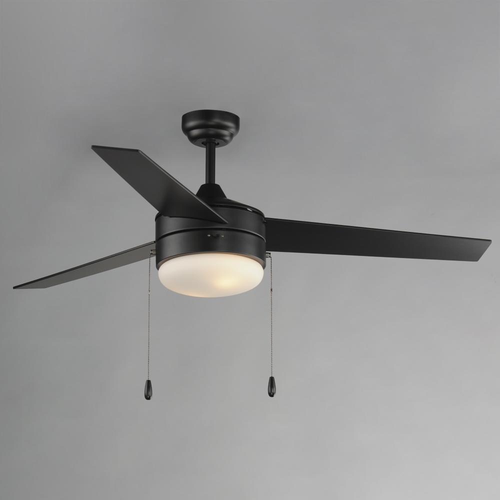 A contemporary, yet transitional look at economical pricing, the Trio fan is finished in Satin Nickel with 3 straight fan blades in Black on one side and silver on the other side. The fan is powered by an included wall control or pull chain as well as LED