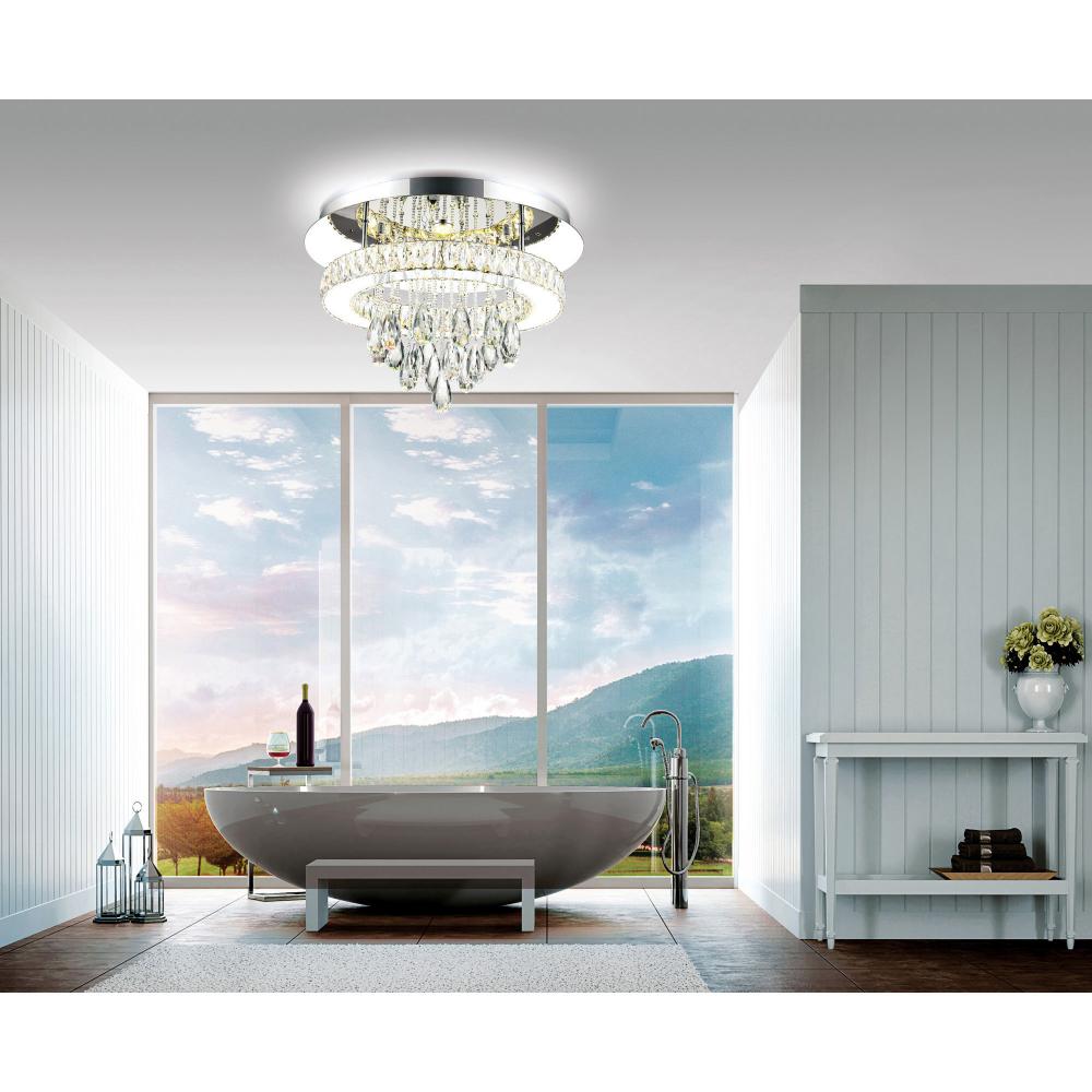 Add elegance and brilliance to your space with the Veil 20-Inch LED Flush Mount Ceiling Light. Designed to impress, this energy-efficient fixture features a sleek chrome canopy with a reflective mirror finish that enhances the sparkle of the crystal-embellished ring. At the center, strands of faceted crystal beads catch and scatter light beautifully, creating a glamorous statement that elevates any room.