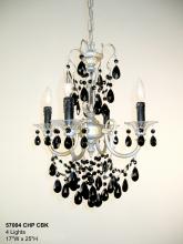 Via Venteo 17"Wide x 17"Long x 25"High Lights: 4 x 60W candelabra Finish Shown: Ebony Pearl Crystal Shown: Crystalique Chain or Cable Length: 3 Ship Via: Parcel Shipping Weight: 33 Hanging Weight: 15 Catalog/Page Ref: 5005/51 This series depicts an era of prosperity and prestigious living. Hand-etched 24% lead crystal columns, founts and bobeches are interspersed among the heavy chased Spanish castings, and then generously adorned with unique crystal shapes – oysters, kites, almonds – that recreate the style of Italian Renaissance period.