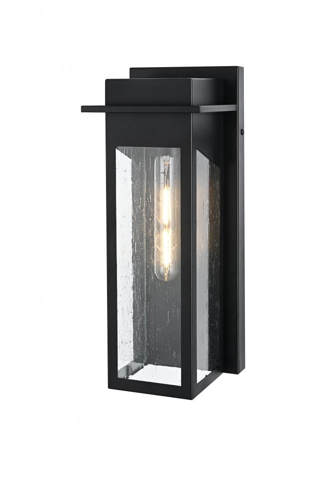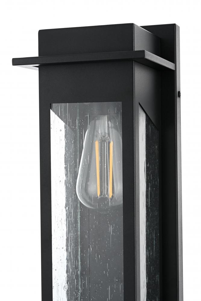 This outdoor wall sconce boasts a stunning combination of iron and seeded glass to create a modern and timeless appeal for your home's exterior. The sturdy iron frame envelops clear, textured glass panels, giving off a warm and inviting glow. The geometric pattern adds visual interest and sophistication, while the E26 socket allows you to pair it with a vintage-style bulb for that perfect accent lighting. This light effortlessly blends with a variety of styles, enhancing the charm of any outdoor space—from porches and patios to entryways. It’s the perfect piece to transform your exterior with a soft, ambient glow while showcasing an eye-catching architectural silhouette.