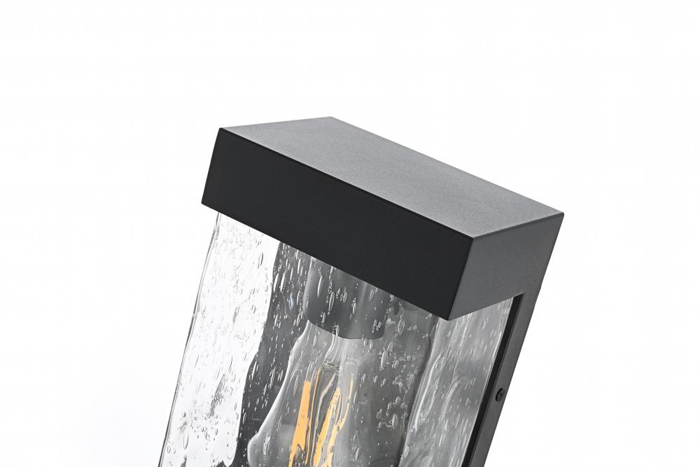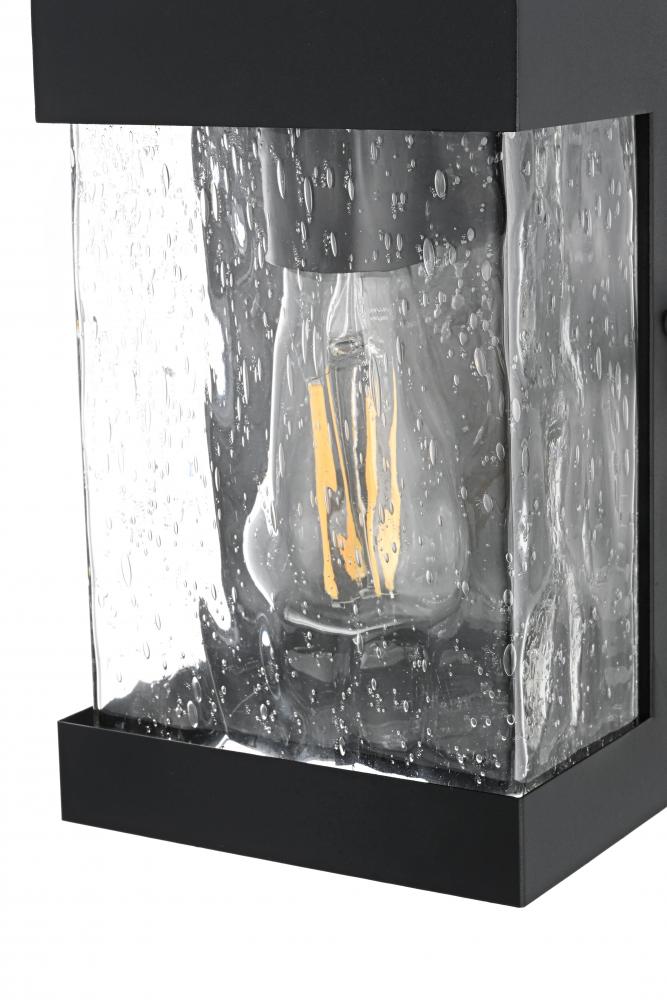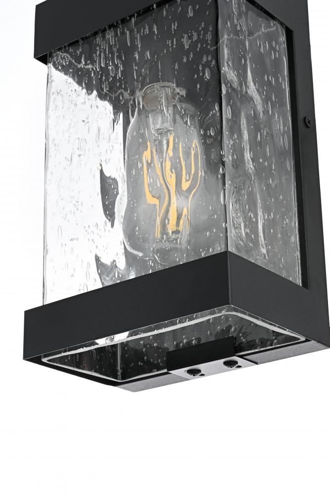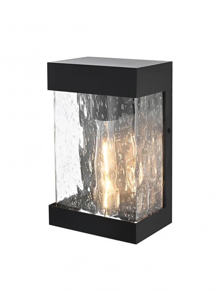 This sophisticated outdoor wall sconce combines timeless design with functional charm, perfect for modern and traditional homes alike. Featuring a sturdy iron frame and textured clear glass, this sconce creates a warm, inviting glow. The E26 socket offers versatile bulb options, making it easy to achieve the perfect ambience for your outdoor space. The geometric boxed design with sleek lines adds a modern yet classic touch, making it a perfect addition to front porches, patios, or garden walls. with weather-resistant materials and a durable construction, this wall sconce provides both reliability and a striking focal point for your home's exterior.