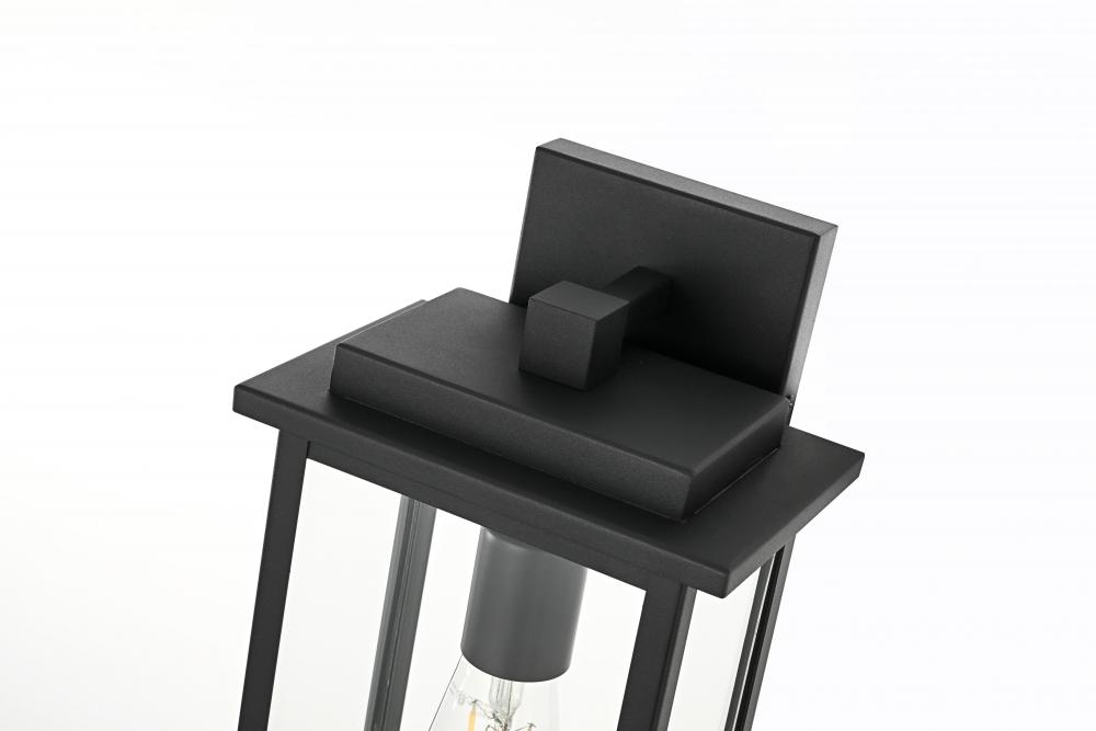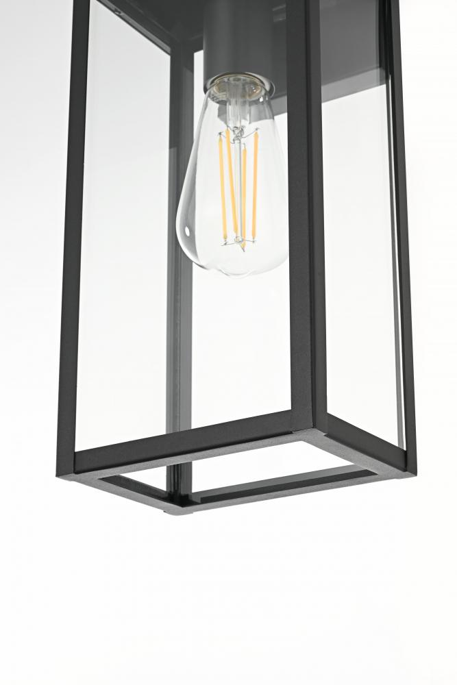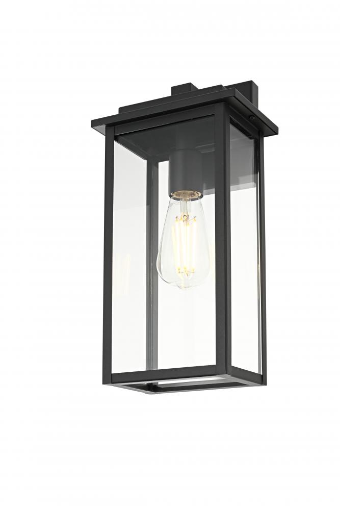 Transform your outdoor spaces with this stunning modern wall light, crafted for both style and functionality. Featuring a sleek, rectangular frame made of sturdy iron and finished in a versatile black, this light blends well with a wide range of exterior designs, from modern to transitional. The clear glass panels offer maximum illumination, showcasing the bulb and adding visual interest to your outdoor area. with a wet label rating, this wall light is designed to withstand direct exposure to rain, making it a durable choice for patios, porches, and gardens. The minimalistic backplate provides secure mounting, and the open-bottom design ensures easy bulb changes and low maintenance. with its single E26 socket, you can personalize the look with your choice of bulb (sold separately). Elevate your home's exterior and create a welcoming glow with this modern outdoor wall light that perfectly balances form and function.