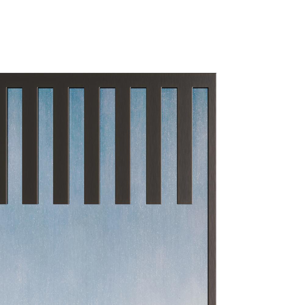 The bronzed iron Zelina Mirror offers an alluring antiqued ombre effect that is eye-catching on any wall. Drawing inspiration from a simple utilitarian fork, a repeating pattern of bronze finished iron adds interest across the antiqued ombre glass surface. Fitted with a cleat for security, it can be hung horizontally or vertically. Finish will vary.