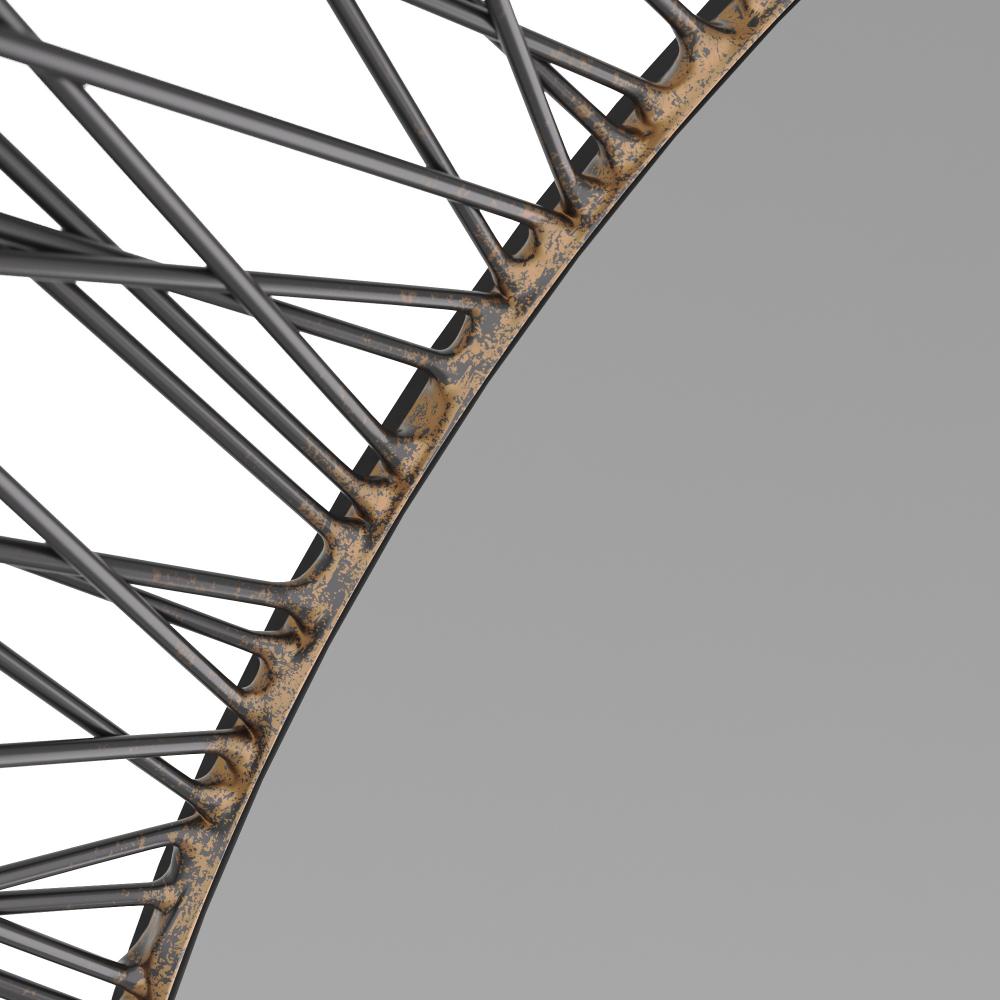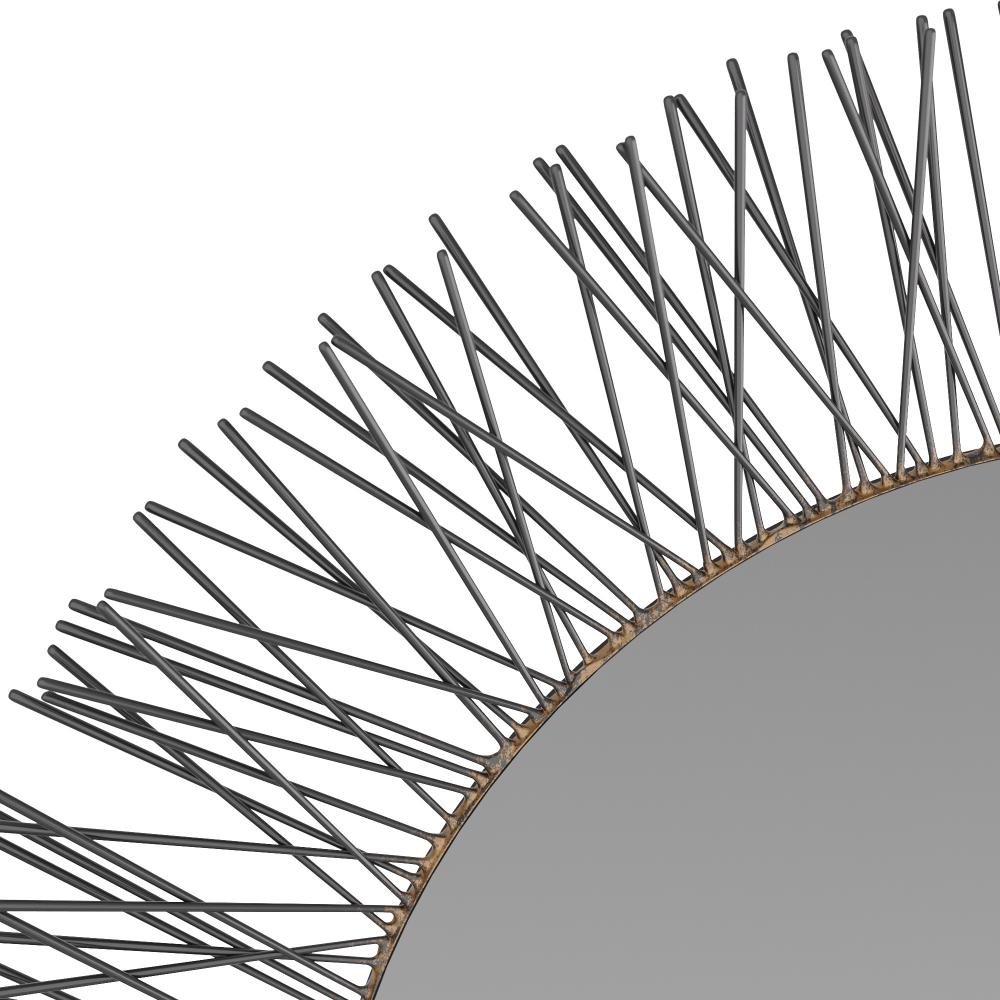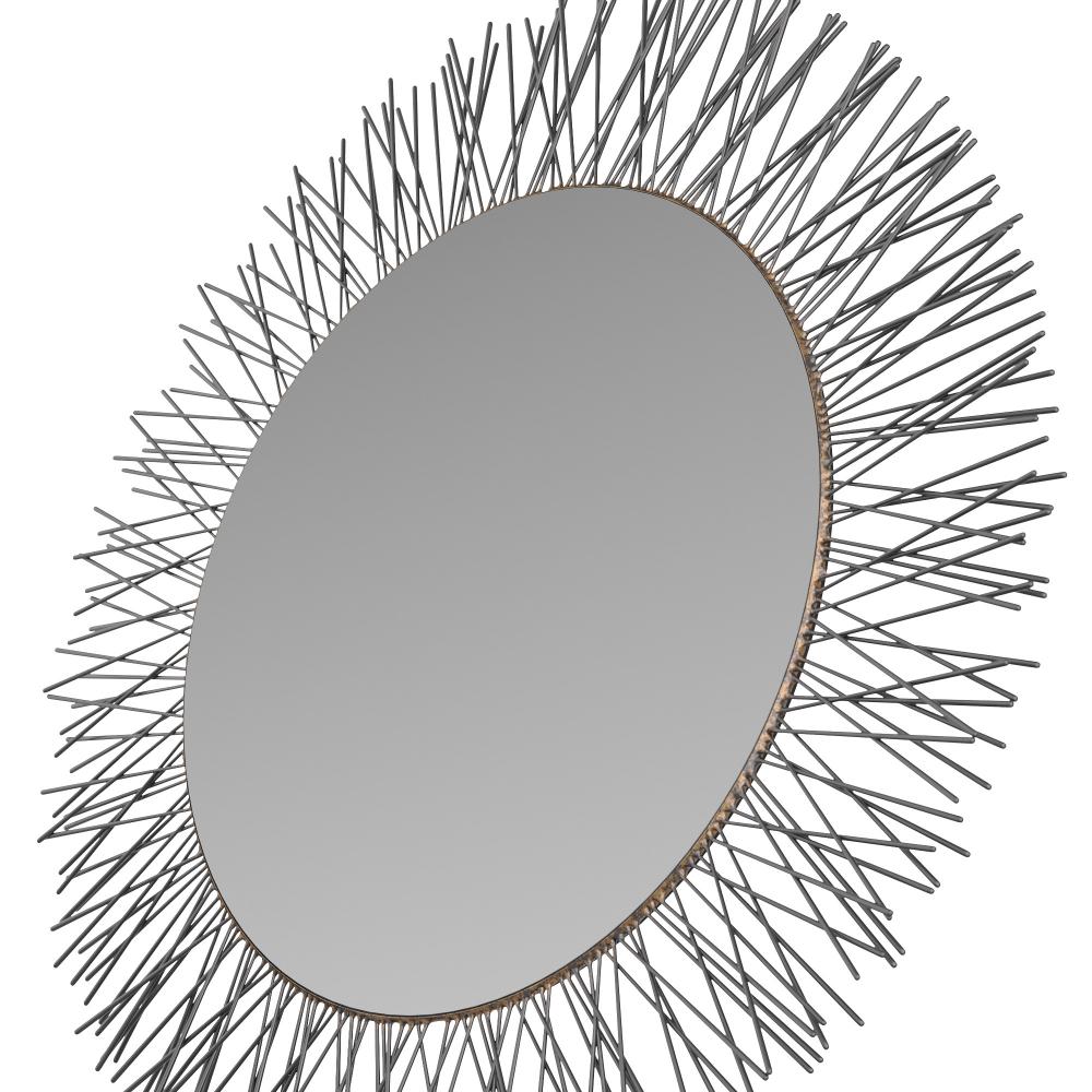 THE SPINES OF A SEA URCHIN LEND INSPIRATION TO A ROUNDED MIRROR FRAMED IN BURNISHED IRON. ACCENTED WITH CONTRAST SOLDERING ABOUT ITS PERIMETER, THIS ORGANICALLY PLEASING STYLE BRINGS THE BEST OF THE NATURAL WORLD INTO ANY SPACE. DESIGNED TO BE HUNG VERTICALLY, IT IS FITTED WITH SECURITY CLEAT HARDWARE. FINISH WILL VARY.